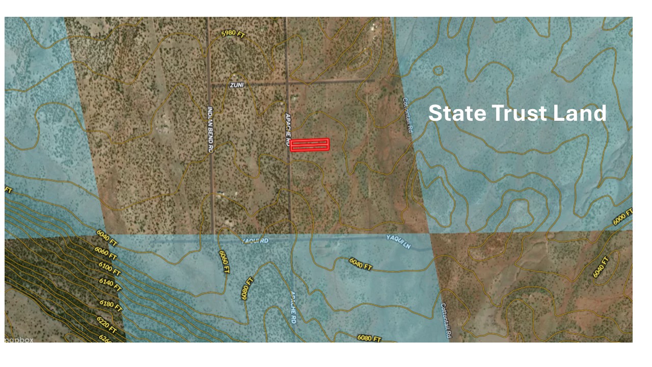 Directions: From Snowflake take Concho - Snowflake road to approx mm 14, turn right onto Apache Rd. At 1.5 miles make left on Pinion. Go another 1/10th mile and turn right on Apache Rd. Continue until the parcels which will be on your left.