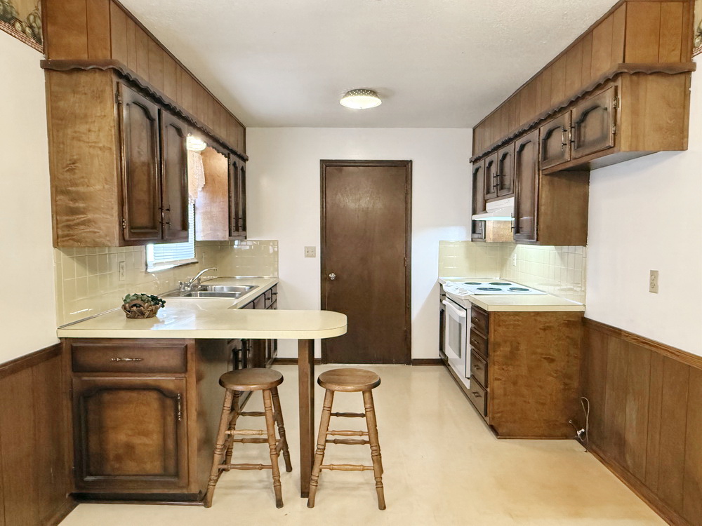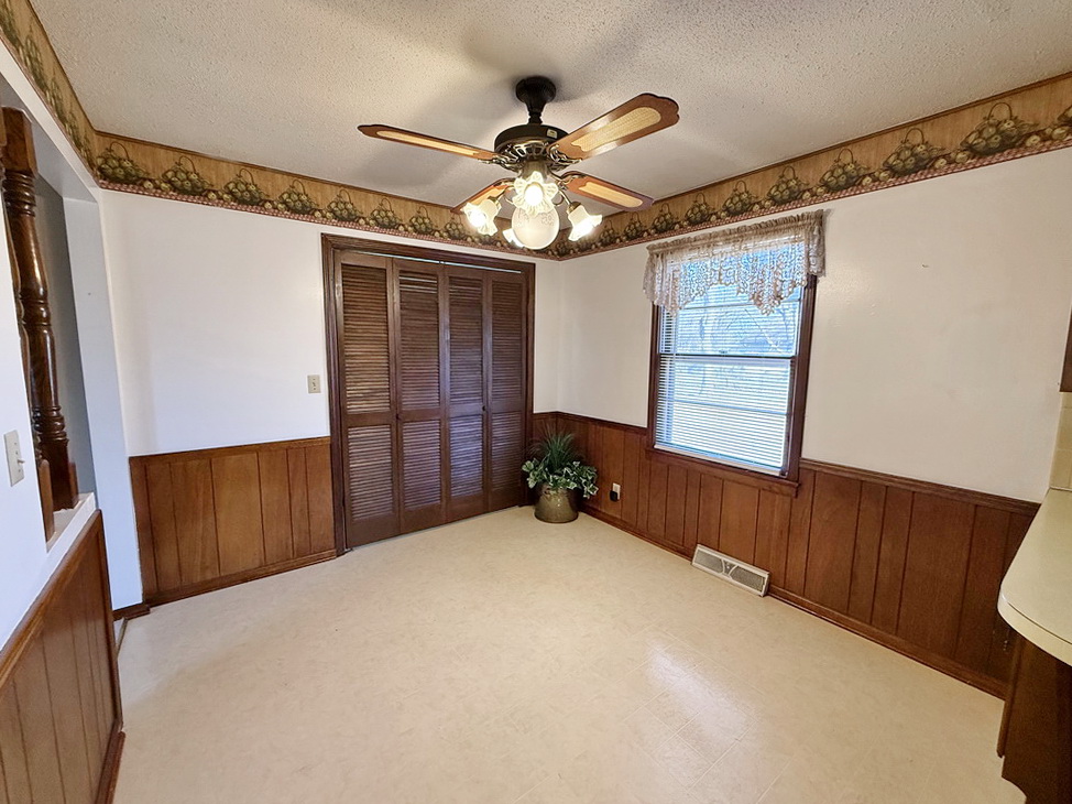 Schedule a showing soon to see this 3 bedroom, 1 bathroom starter home on the southside of El Dorado Springs, MO. This 1,054 sq ft home offers low-maintenance, charming curb appeal with the vinyl sided home with shutter accents. The home features a large living room. Then kitchen/dining combo offers a small bar for dining or additional countertop space as well as a pantry closet for additional storage. An electric range and vent hood are sold with the home. The window over the kitchen sink gives a nice view of the open backyard that features a 9’x18’ concrete patio perfect for shaded summer evenings. The home features a newer HVAC & water heater. The one car attached garage gives convenient parking and the tool shed out back provides great outdoor storage. Nice condition homes in this price range are difficult to find, so call soon!