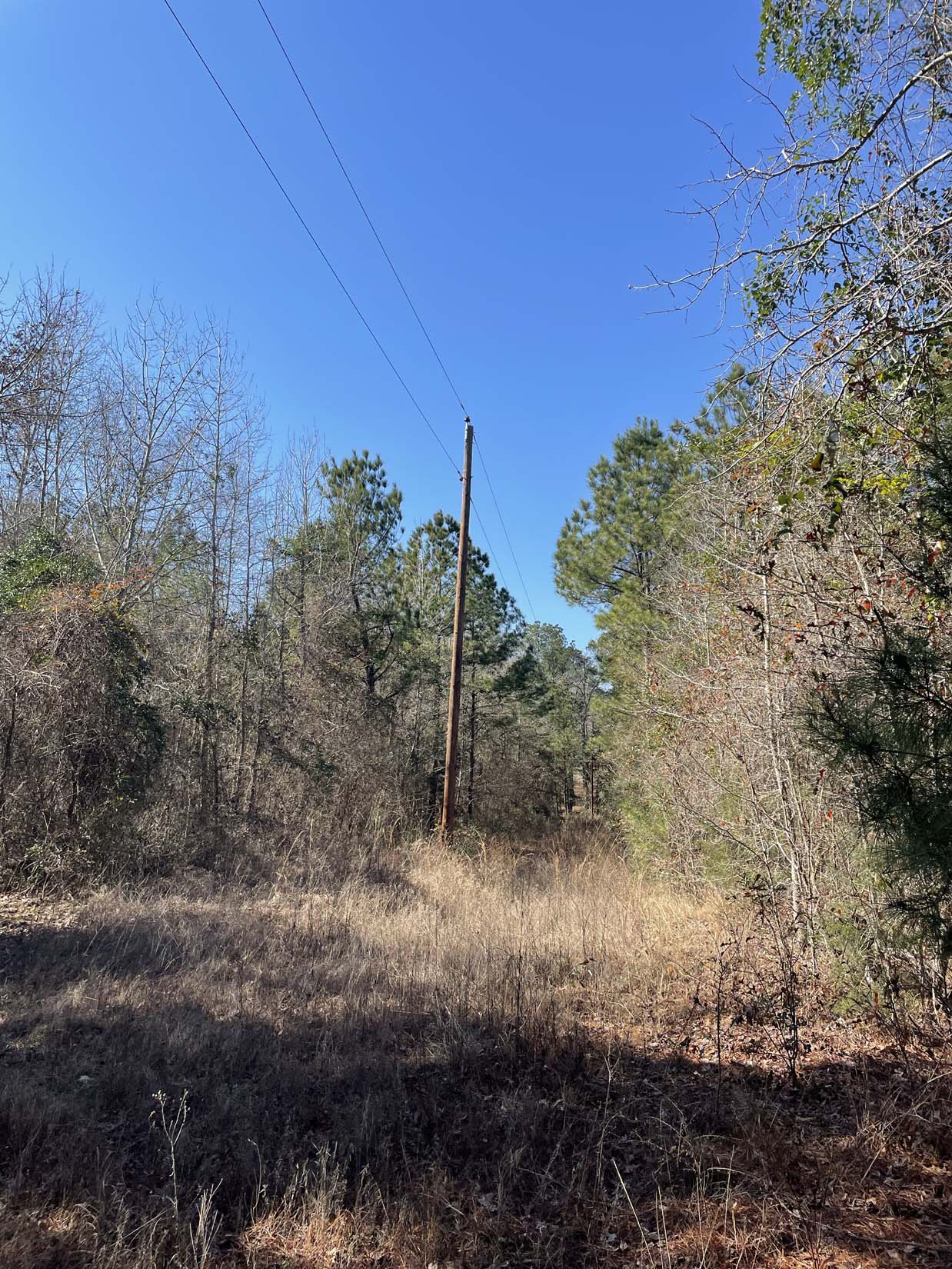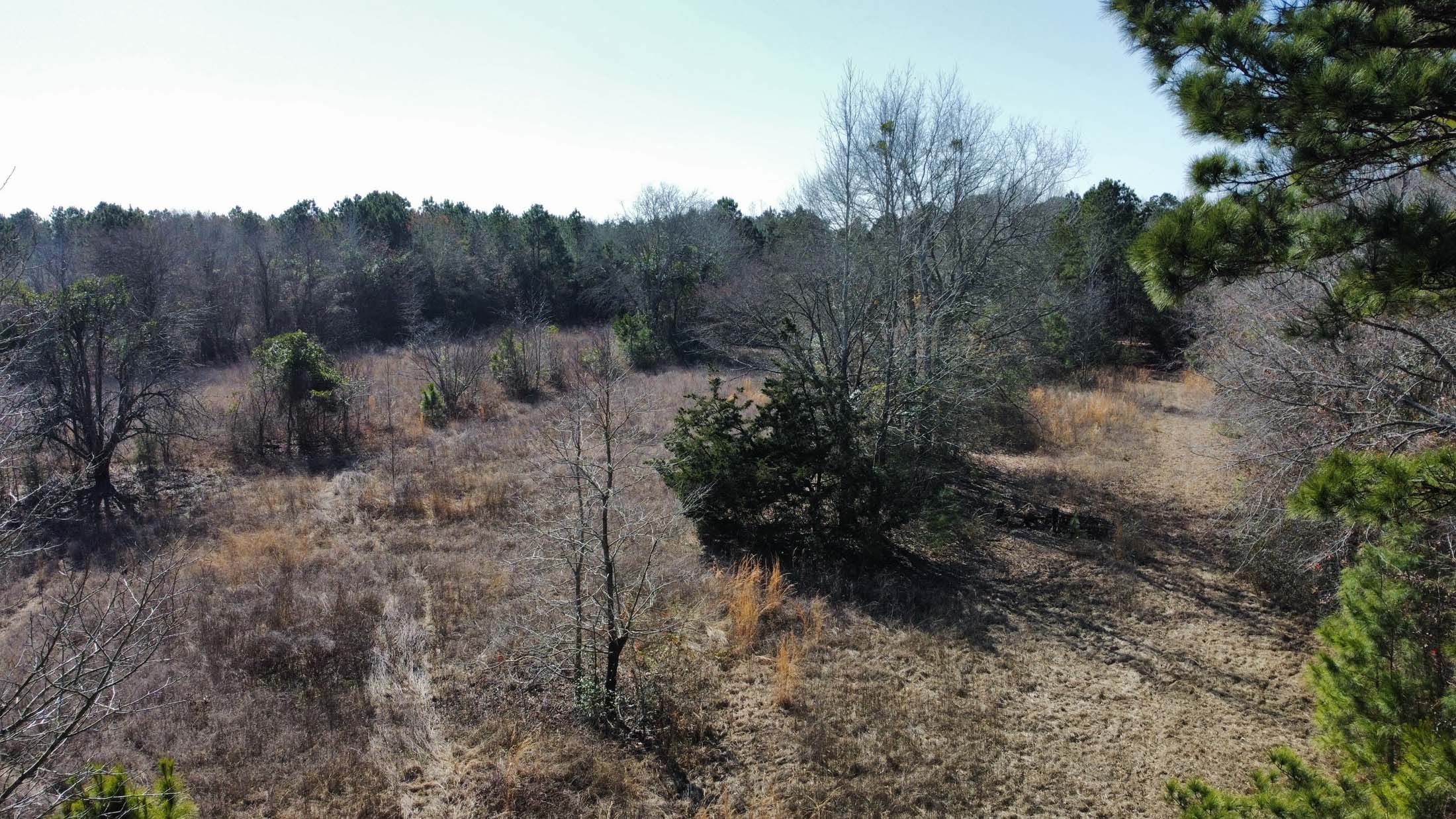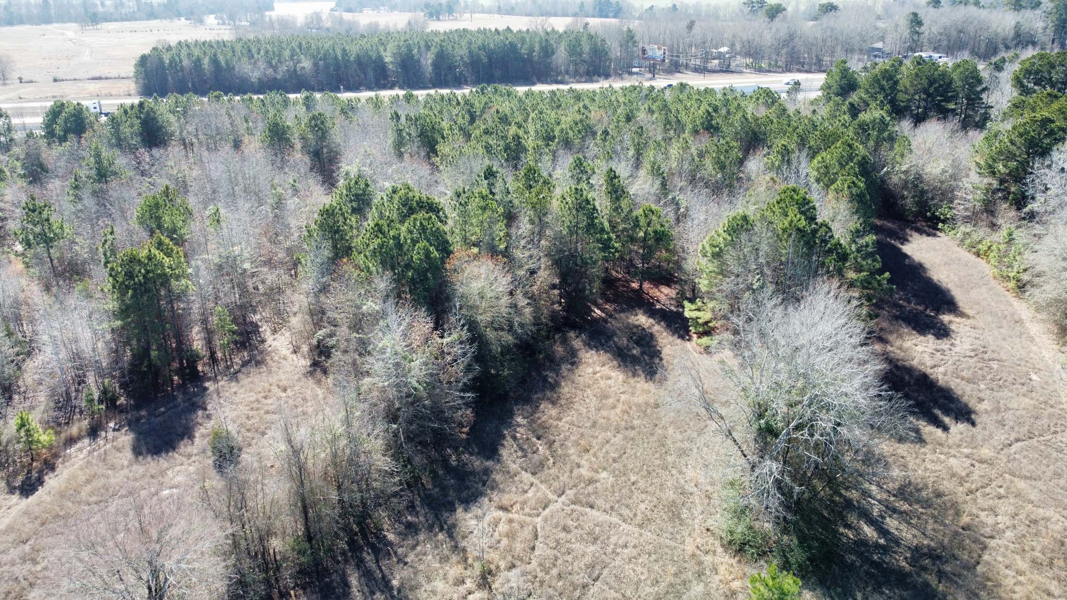 The land reads like a field guide to East Texas Pineywoods terrain. The front acreage along FM 1252 is thick with mature hardwood and pine timber—some harvest-ready—creating a natural sound and sight buffer from the road. Move deeper onto the property and the landscape opens into pastureland, ideal for a homesite, food plots, or future agricultural use. The center field then transitions back into heavier timber as you approach the rear boundary, which runs along Interstate 20. A year-round creek traces the western property line, feeding the surrounding habitat and providing a water source..